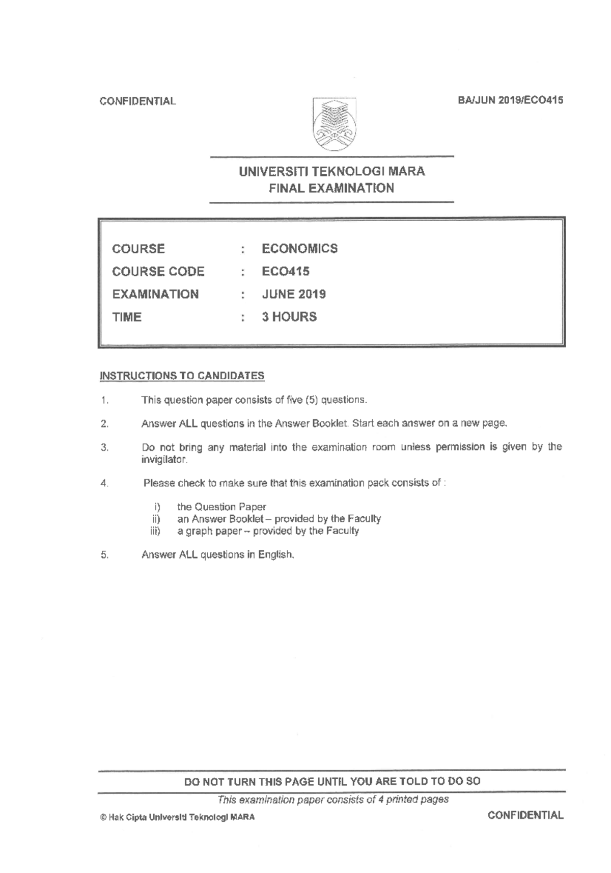 Final Examination Questions June 2019 Session 2 Eco415 Semester 1 Studocu